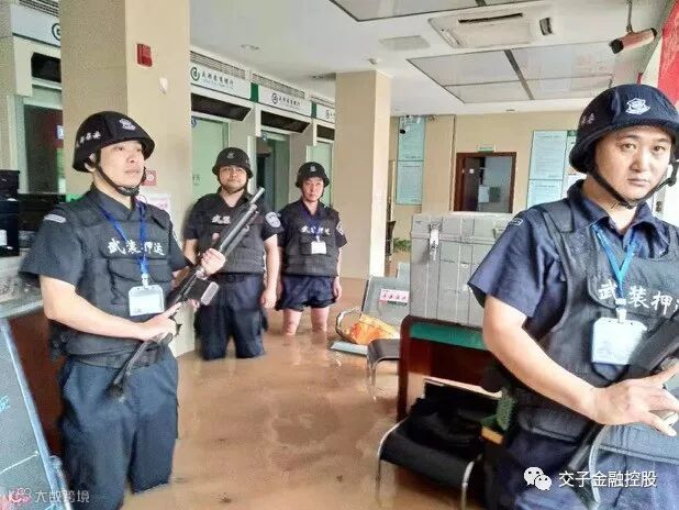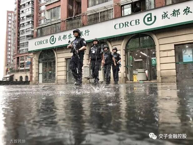 中午12点,农商银行天府新区支行(万安支行)网点,受到今日暴雨影响,整个大厅被洪水浸没。接到该网点紧急求助后,正在吃午饭的中融安保翼虎押运某中队的队员们,立刻登上车辆出发。有的队员才打好饭菜,甚至连一口都没有来得及吃,就匆匆出发了。