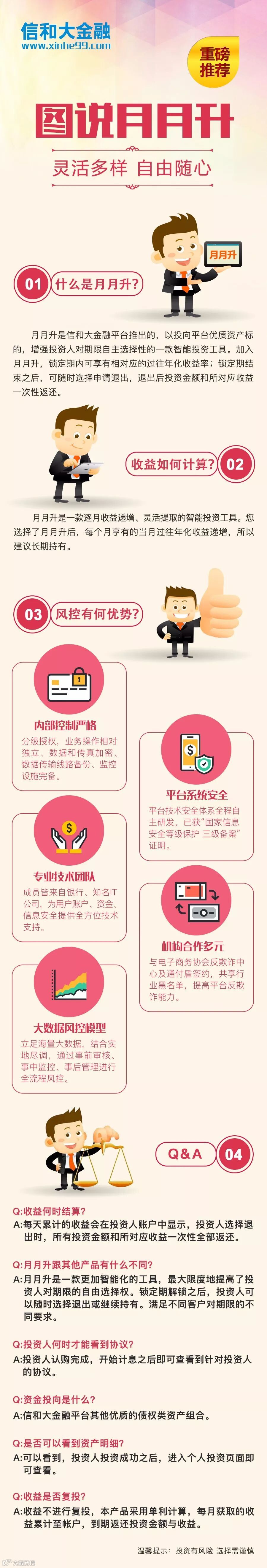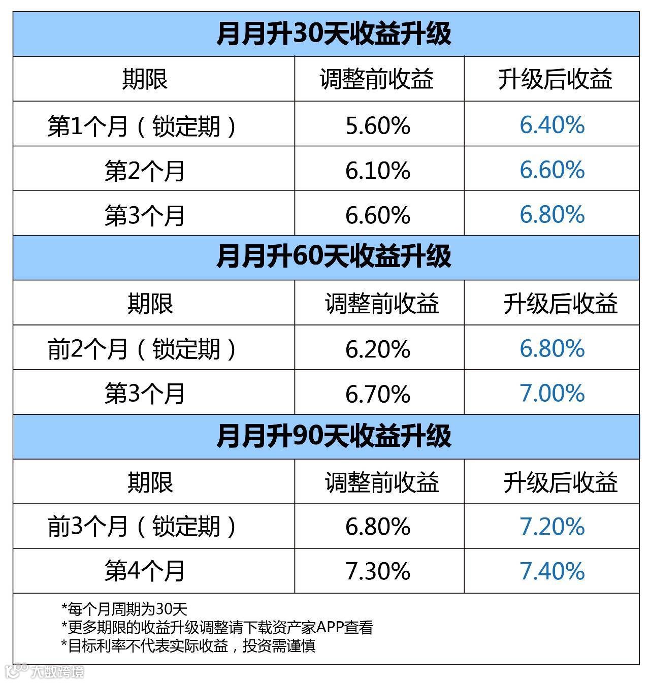 月月升适合对投资收益性与流动性兼顾的投资人,目前仅限在资产家APP中投资使用。资产家APP最新版本已全面更新上线,请及时下载或更新。