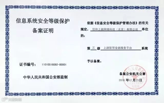 信和大金融之前获得国家信息安全等级保护三级备案