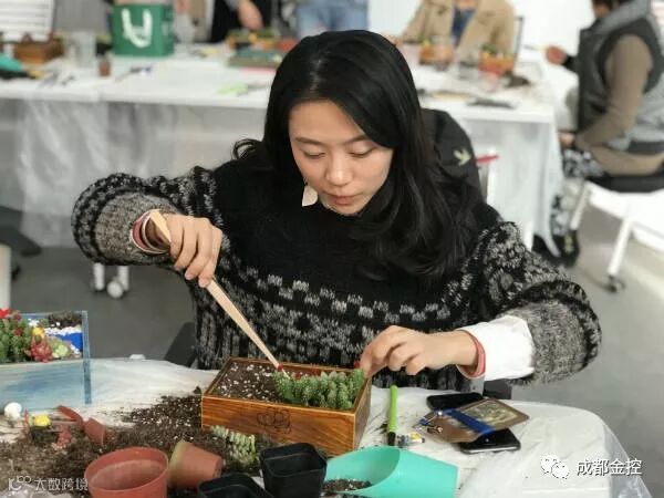 女同胞们对多肉植物艺术兴趣极高,纷纷与花艺师交流互动,请教一些栽种方面的专业知识,并亲手制作多肉植物作品,与各种样式的美美的“肉肉”来了次亲密接触。普通的玩偶、多肉,经过大家精巧的修饰与加工之后,变成了令人赏心悦目的艺术品。
