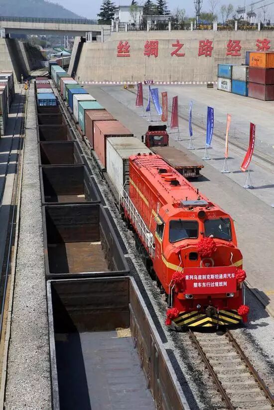 2017年4月13日,来自乌兹别克斯坦的汽车整车集装箱班列驶入连云港中哈物流合作基地。 当日,来自乌兹别克斯坦的载有50个汽车整车集装箱的班列驶入江苏连云港中哈物流合作基地,这批汽车将于14日通过海上航线运往韩国。本次班列的开通填补了新亚欧大陆桥东行整车货源过境连云港的历史空白,标志着连云港港正式贯通中亚与东北亚之间的货物东西双向循环运输。