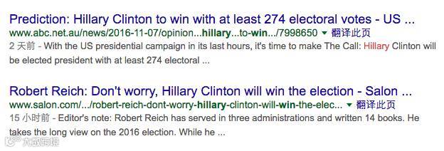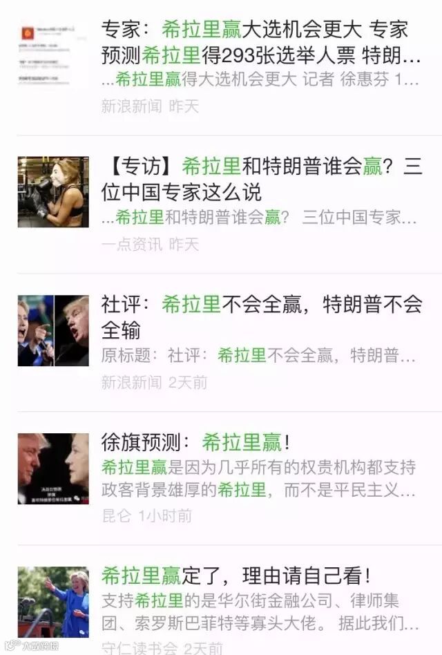 媒体基本都是一边倒认为希拉里会赢!