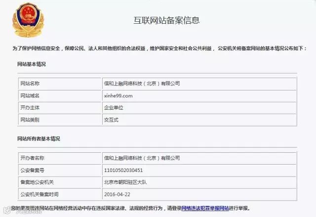 信和大金融网安备案信息