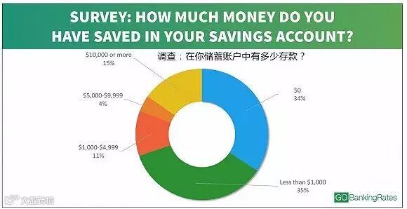 美国人在存款这件事上是真的落后了,而且情况一年不如一年。调查还发现,不仅69%的人银行卡里连1000美金都没有,一分钱都不存的人变得更多。去年,28%的人说他们储蓄账户里的存款为零,今年这一比例上升到34%。