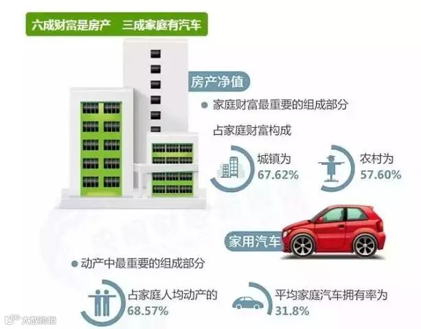 报告显示,房产净值是家庭财富最重要的组成部分。在全国家庭的人均财富中,房产净值的占比为65.61%;在城镇和农村家庭的人均财富中,房产净值的比重分别为67.62%和57.60%。