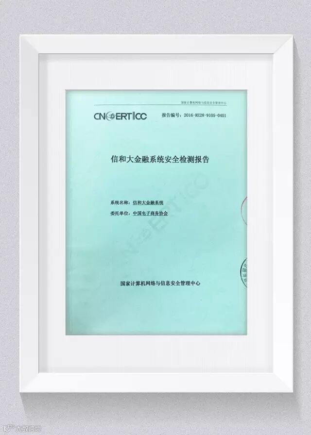 16信和大金融网络安全再上台阶,荣获“系统安全检测合格报告”