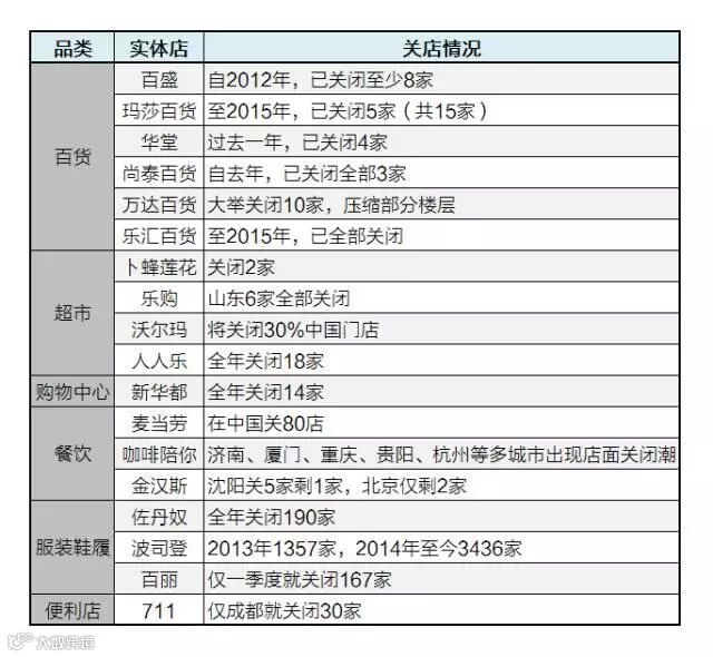 实体店的艰难已经不是一天两天的事情了,被电商逼到死墙角的实体店也不知凡几。最近有人统计了2015年实体店阵亡名单,结果十分惨烈: