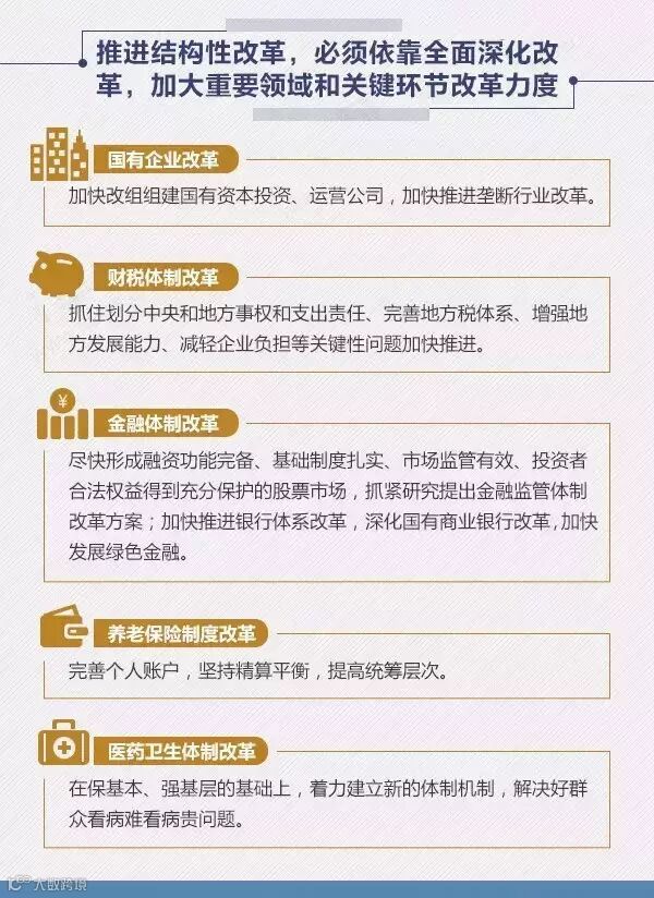 2014年会议的关键词是“新常态”,会议公报对“新常态”下的九个特点进行了系统阐释,而今年会议的关键词则是“供给侧结构性改革”,“结构性改革”一词在会议公报中出现了15次,频率之高,堪与去年的“新常态”相比。