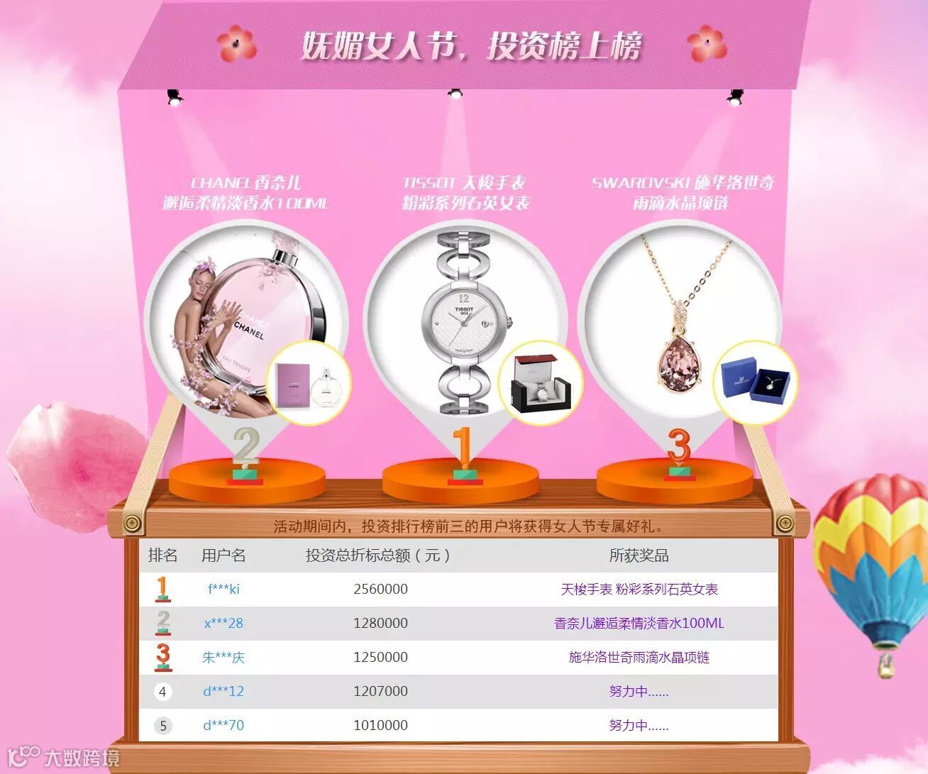 活动期间内投资排行榜前三的用户