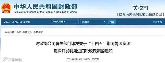 为完善能源产供储销体系,加强国内油气勘探开发,支持天然气进口利用,财政部、海关总署、税务总局近日联合印发《关于“十四五”期间能源资源勘探开发利用进口税收政策的通知》(下称《通知》),明确了2021年1月1日至2025年12月31日期间有关能源资源的进口税收政策。