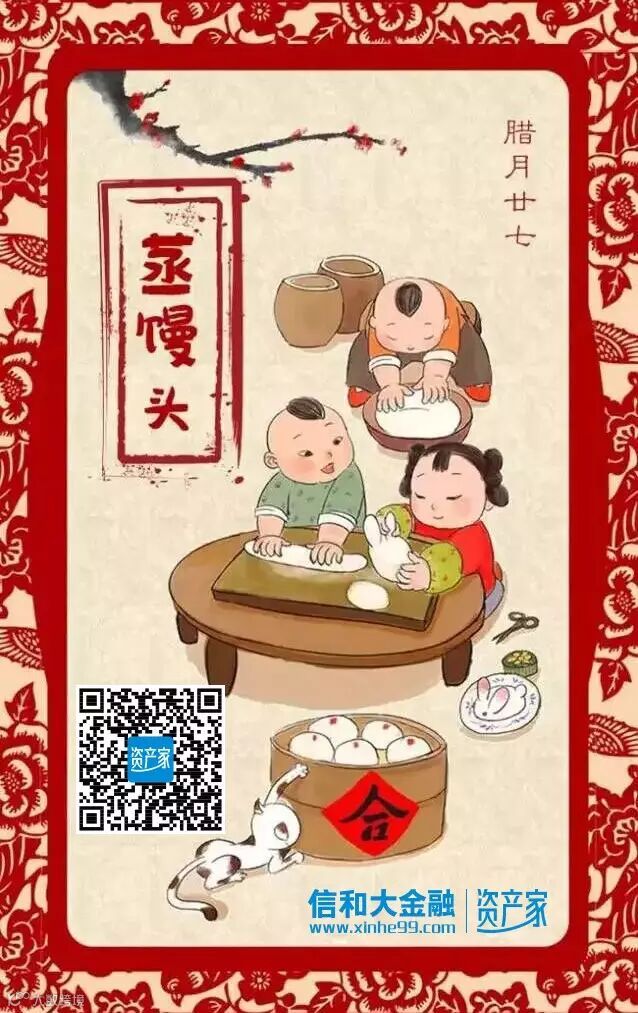 从此以后,人们便在腊月二十七蒸馒头,因为这天蒸馒头最吉利。 不管你是否知道这个传说,也不管你现在是否还亲手蒸馒头,当馒头摆上桌子时,祝福大家在新的一年团圆幸福、蒸蒸日上!