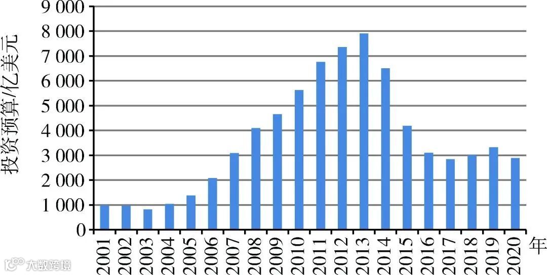 图4 2001—2020年世界矿业开发项目投资预算