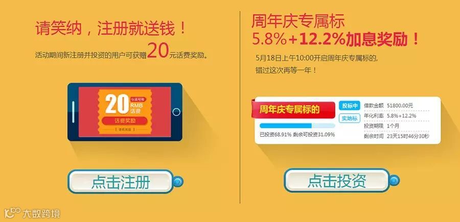 信和大金融疯狂献礼,5月18日-6月18日周年庆期间,不但有注册投资即送话费,还有18%的专属标的让你嗨够一整月,要送当然送实惠!“任性月”转眼还剩四分之三,错过这次就要再等一年啦!
