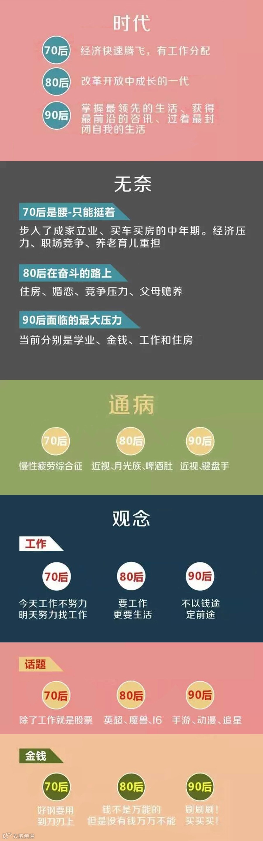 导读:导语70后说80后是垮掉的一代,80后说90后是脑残的一代……生活在不同的时代背景下,人们的想法性格都会凸显