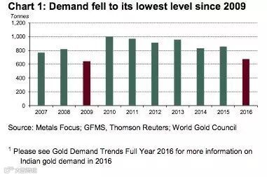 根据世界黄金协会最新报告显示,2016年灾难性的货币化方案使印度黄金需求严重下降,糟糕的2016过后,2017年印度黄金需求将会上升到650吨至750吨。