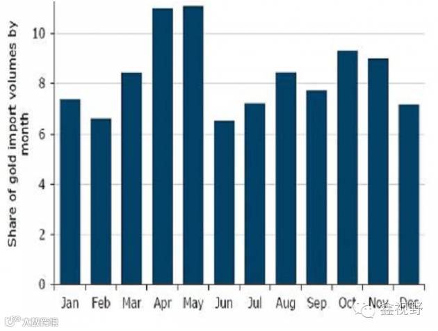 从2000年到2015年,印度卢比在5月份均出现“规律一致性”贬值。这是因为黄金价格以美元计价,所以黄金卖家需要抛出印度卢比以换回美元,从而才能够从国外购买黄金。