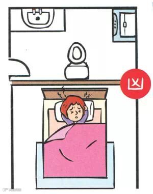 睡觉的位置上或下是厕所,有多恶心不用解释也想得到,只是一般人只想到自家空间如何充分利用,忽略了楼上、下的关系。如果睡床上或下是厨房炉灶,会让人肝火过旺,影响肝功能。