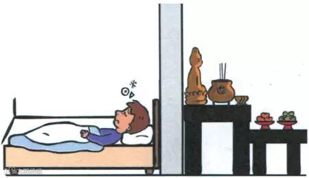 只有小庙的庙公才会睡在神像的后面或神桌下面。一般人即不是庙公,也不是灵媒,千万不可如此睡。