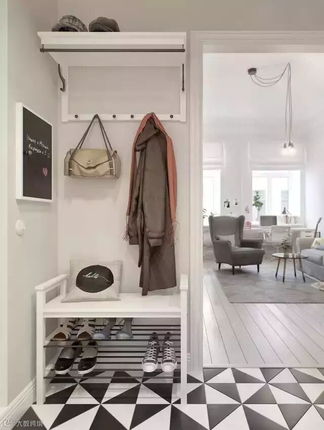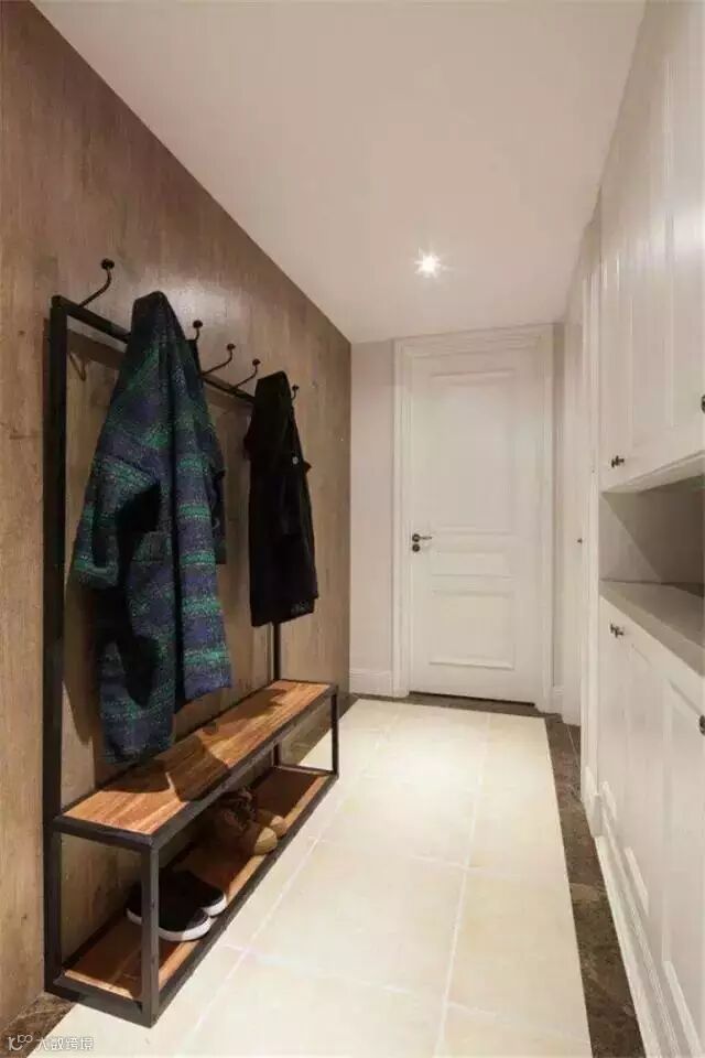 当然,有的人并不想把玄关给独立出来,直接挂个挂衣钩,加几块隔板,就能起到玄关的作用啦。