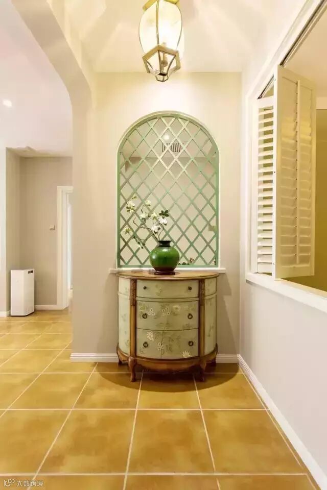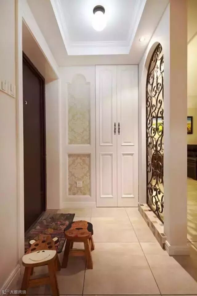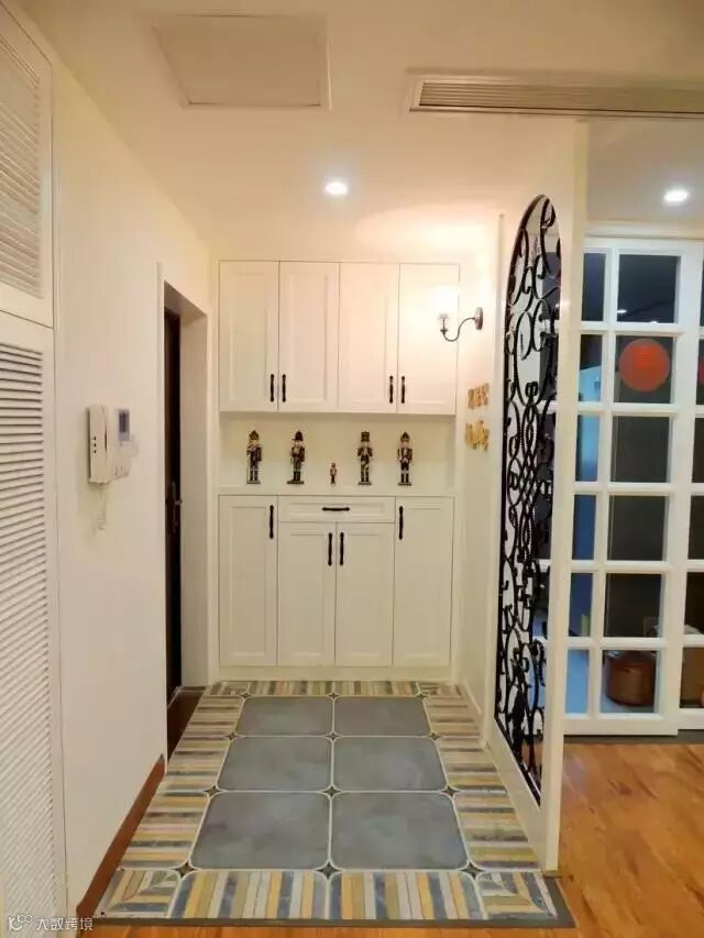 这应该是我们最常见的玄关设计了,没有什么特色,但是实用性还是很足的,最好还可以装面换衣镜,就更好了。
