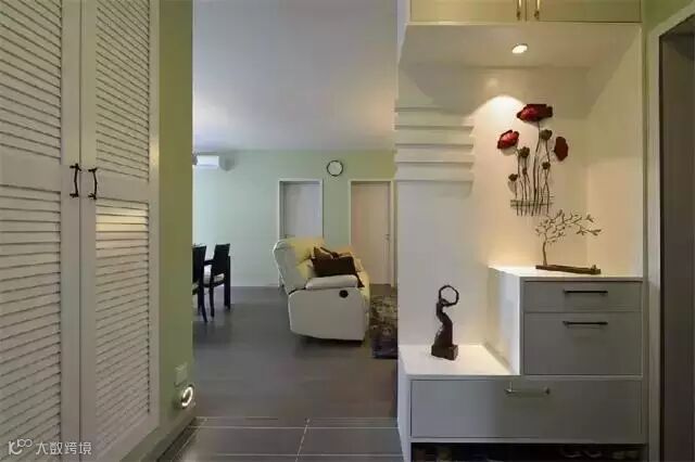 或者你想要的是一个独立的小玄关,那就加个隔断吧!把这个角落给包起一部分,形成一个玄关的小空间。