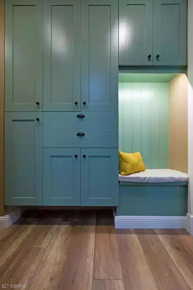 当然,没有墙的话,就用小小的鞋柜来代替吧~有鞋柜的地方就是玄关啦~好看的鞋柜更能让家里变得美丽一些。