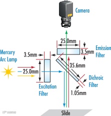 最基本的概念和示意图见图 1。滤光片排列由三种类型的滤光片组成:激发滤光片、分色滤光片和发射滤光片。