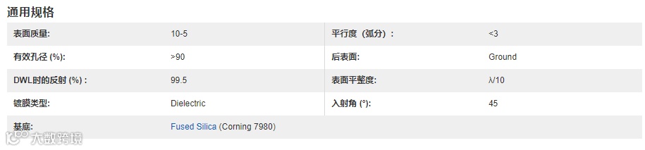 ✔ 10-5 表面质量和 λ/10 表面平整度