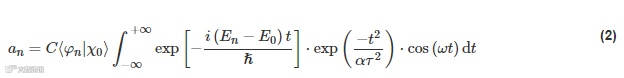 考虑高斯超快激光脉冲将系统从能量为E'0 的一种状态χ0 转换为能量为En的另一种状态φn , 波函数如下: