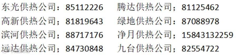 同鑫集团各供热公司24小时服务电话