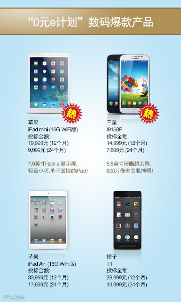 信和君还要告诉小伙伴们一个好消息,从8月8日开始,信和大金融推出“0元e计划”活动,该计划是以信和大金融现有产品为基础的稳健、安全的超值投标计划。加入“0元e计划”的用户,一次性投入特定金额,即可优先获得iPhone、iPad、Macbook等数码产品,到期之后返还全部投入!详情请见信和大金融官方网站:www.xinhe99.com