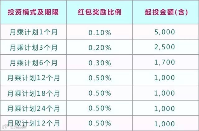 3. 活动适用于魔投系列月乘计划的6款期限模式及月取计划的1款期限模式;
