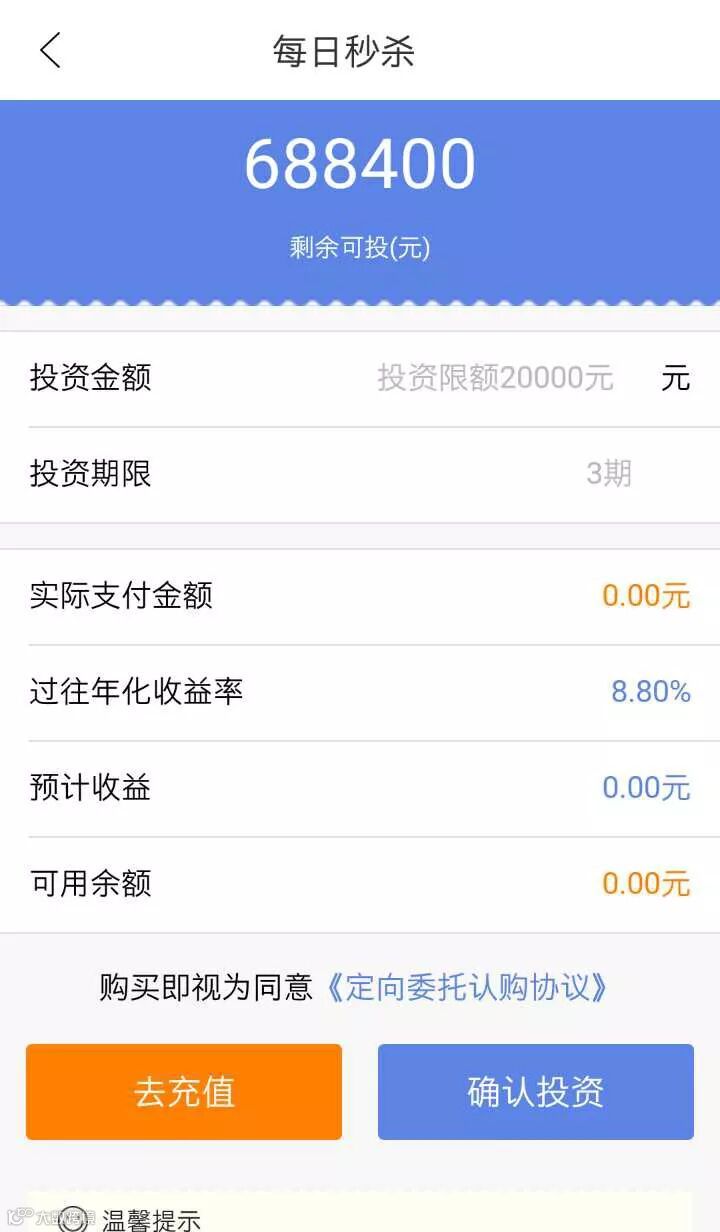 点击“确认投资”按钮