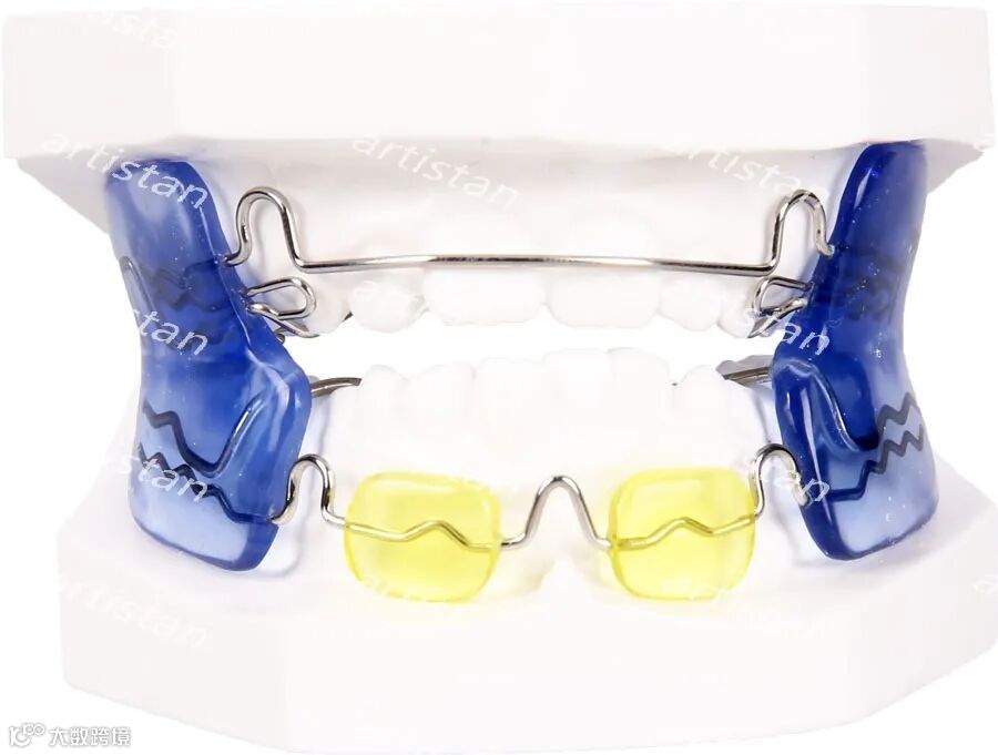 适用于生长发育期儿童及青少年的肌性和轻度骨性错𬌗畸形,临床医生需进行𬌗重建,下颌前伸或后退时确认颏部位置,防止偏斜。