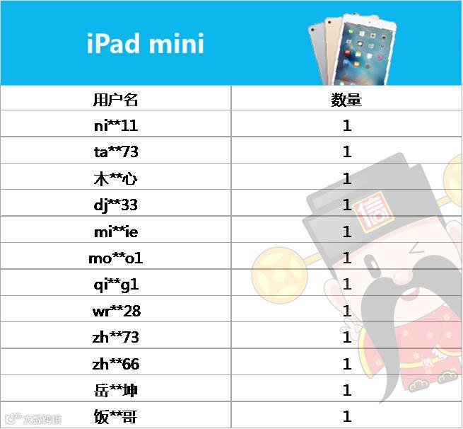 四、 荣获“理财匠,理财降”活动iPad mini的用户: