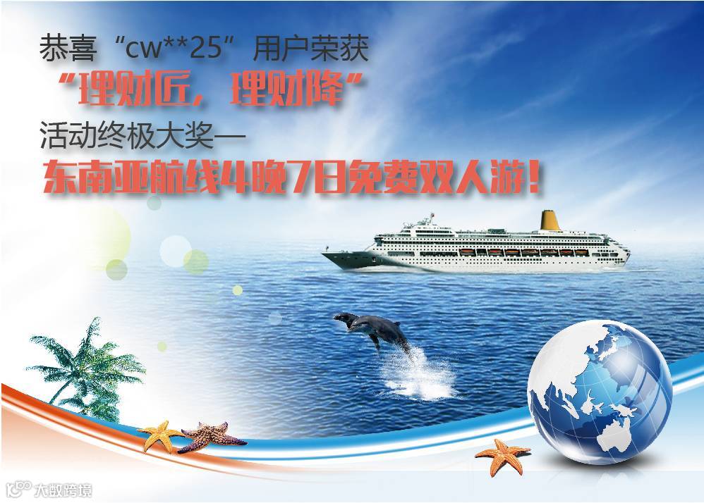 一、恭喜“cw**25”用户荣获“理财匠,理财降”活动终极大奖—东南亚航线4晚7日免费双人游!