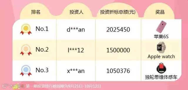 活动期间,决出投资排行榜前三名用户,将送出终极豪礼!