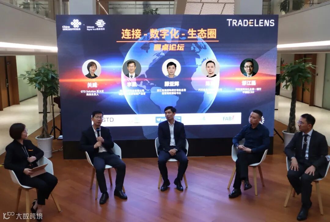 在圆桌论坛环节,由GTD Solution亚太区商务负责人关威主持,与联通数字科技有限公司物联网事业部首席产品官李凯、浙江省海港陆港空港信息港运营商联盟秘书长滕亚辉、易拼网董事长陈建、阿联酋阿布扎比第一银行中国区CEO邹江磊等行业大咖共同围绕连接-数字化-生态圈等核心话题展开了激烈的讨论。李凯表示,中国联通不断研究和深耕跨境物流场景,在云、网、端、边、业领域构筑端到端服务能力。随着数字化时代的到来,中国联通将携手产业链上下游合作伙伴,共同成为航运产业的科技赋能者,数字化进程的推动者,生态融合的助力者。
