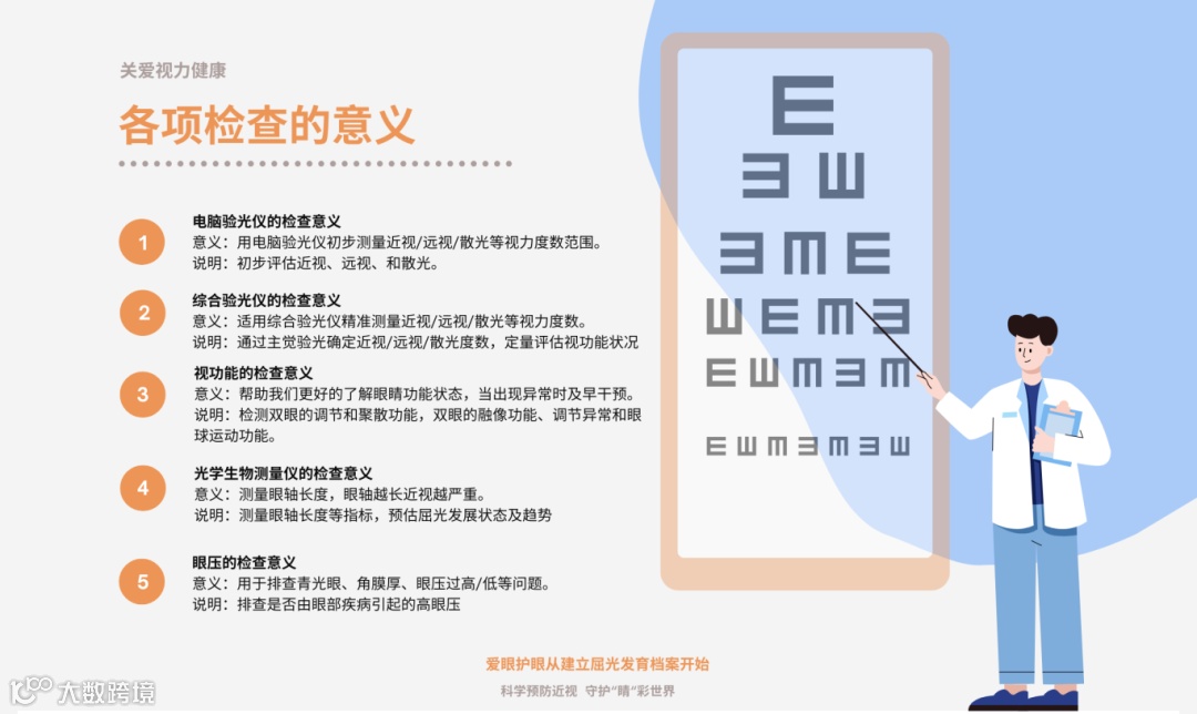 定期复诊能够帮助医生/视光师和家长及时掌握孩子的视力变化和其他眼睛功能状态、眼部疾病,进而调整近视的防控措施。