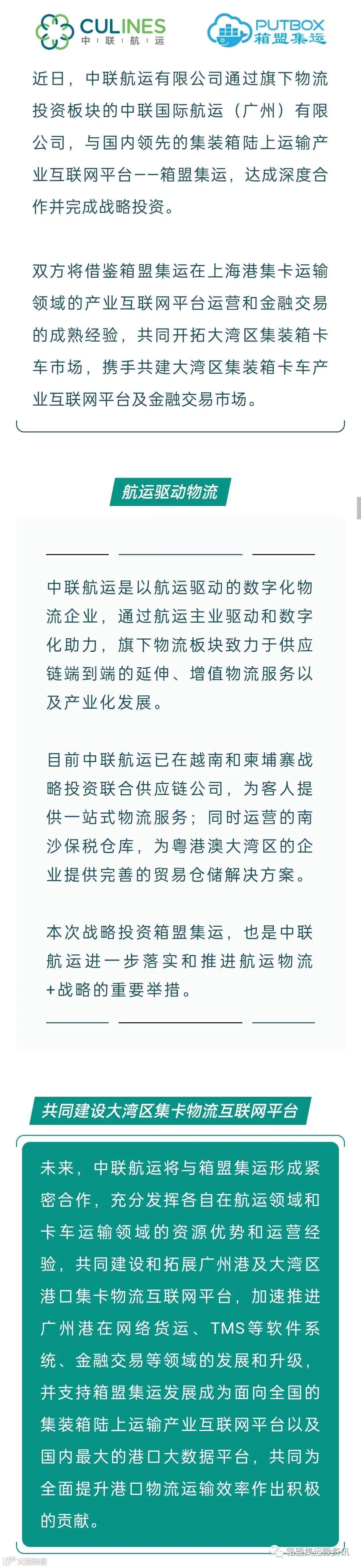 上海箱盟集运信息科技有限公司发布公司动态和媒体报道,维护合作伙伴与投资者关系,与投资者互动的信息交流官方平台。