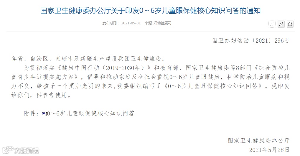导读:国家卫健委发布的关于0~6岁儿童眼保健核心知识问答,满满的干货知识,值得收藏!微信号 | 176887094