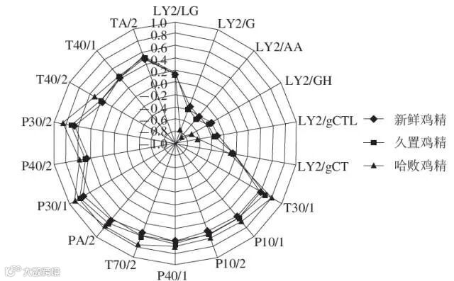 通过技术对新鲜鸡精、久置鸡精和哈败(通常是指鸡精在生产储存过程中因氧化、微生物滋生或成分变化而导致的风味劣变和品质下降)鸡精的挥发性风味成分进行分析鉴定,研究表明,哈败鸡精的风味轮廓与新鲜鸡精有明显差异。