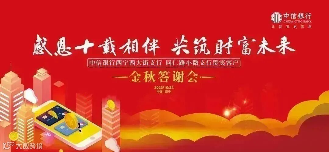 10月22日,以“感恩十载相伴.共筑财富未来”为主题——中信银行2023年金秋答谢会的活动在青海凯槟国际酒店举行。此次活动由中信银行西宁西大街支行,同仁路小微支行共同举办。通过传播中信银行品牌文化和产品服务理念,持续维护新老客户。同时,现场将产品服务进行推介。广大贵宾客户与嘉宾欢聚一堂,亲历一场让财富有温度的文化盛宴。