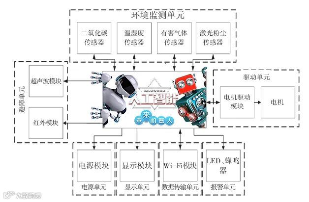 针对以上情况,一款基于多传感器组合应用的多场景智能环境监测机器人在代替人工巡检的同时还可以提供多对象环境监测,或对同一对象进行多点检测,灵活应用于各种场所,可以代替人为到危险的环境中采集环境参数,同时可远程实时监测环境参数。当监测所得环境参数异常,则会发出警报,提示操作者做出应对措施,及时消除监测场所的危险因素。