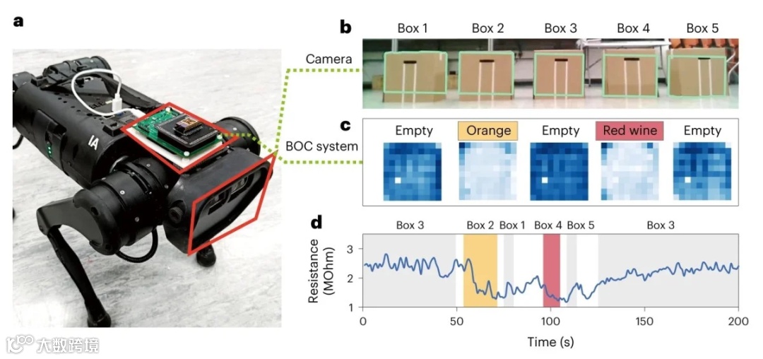 香港科技大学在一次演示中,研究人员将嗅觉芯片与机器狗的视觉传感器集成在一起,创建了一个嗅觉和视觉相结合的系统。这种独特的设置使机器人能够准确识别盲盒中的物体,展示了将人工嗅觉技术与其他传感技术集成以创建更先进、功能更强大的智能系统的潜力。