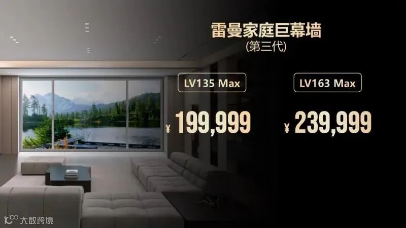 今年1月,雷曼光电发布了第三代家庭巨幕墙LV163 Max(4K),定价23.9999万元。紧随其后,TCL在3月的春季发布会上推出了163英寸Micro LED“双曜”阵容——Max163M与Max163M Pro,定价分别为24.9999万元和34.9999万元。