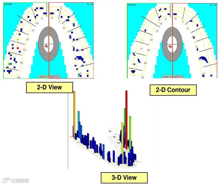 柔性压力传感器阵列结合采集设备及软件分析系统,打造的牙科咬合力测试分析仪,可以给用户提供基于时间和分布咬合力的动态数据,让医患双方得到最直观的口腔数字化信息。