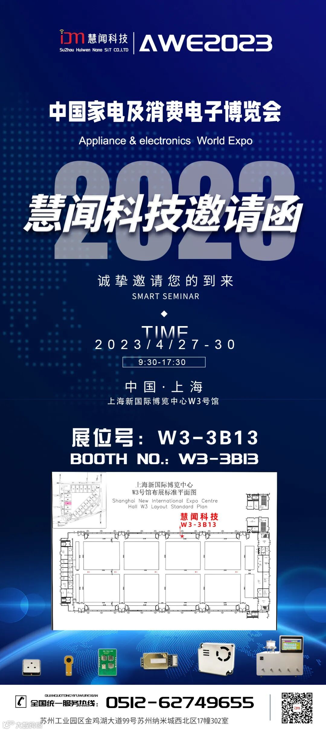 AWE2023中国家电及消费电子博览会于2023年4月27日在上海新国际博览中心正式开展!当前,全屋智能、万物互联是所有企业正在讲的故事。据了解,我国智能家居市场参与者颇多,既有海尔、海信、TCL等传统家电企业,百度、阿里、亚马逊等互联网企业,华为、科大讯飞、思必驰、涂鸦等科技企业,也有新兴全屋智能、智能单品企业等。天眼查数据显示,截至去年,我国有近14.3万家企业经营范围含“智能家居、智能家电、智能家装”,这些智能化的应用场景都少不了传感器的支持。届时,苏州慧闻纳米科技有限公司(以下将称“慧闻科技”)将携公司最新的传感器产品与应用方案为各位友商带来精彩的产品与技术展示。