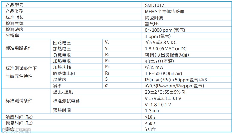 慧闻科技设计了这款SMD1012氢气传感器,采用 MEMS 工艺及半导体材料,对氢气有良好的灵敏度、分辨率和准确性,可检测低浓度氢气,具有尺寸小,功耗低,灵敏度高,响应恢复快,驱动电路简单, 稳定性好,寿命长,结构坚固,抗震性好等优点。