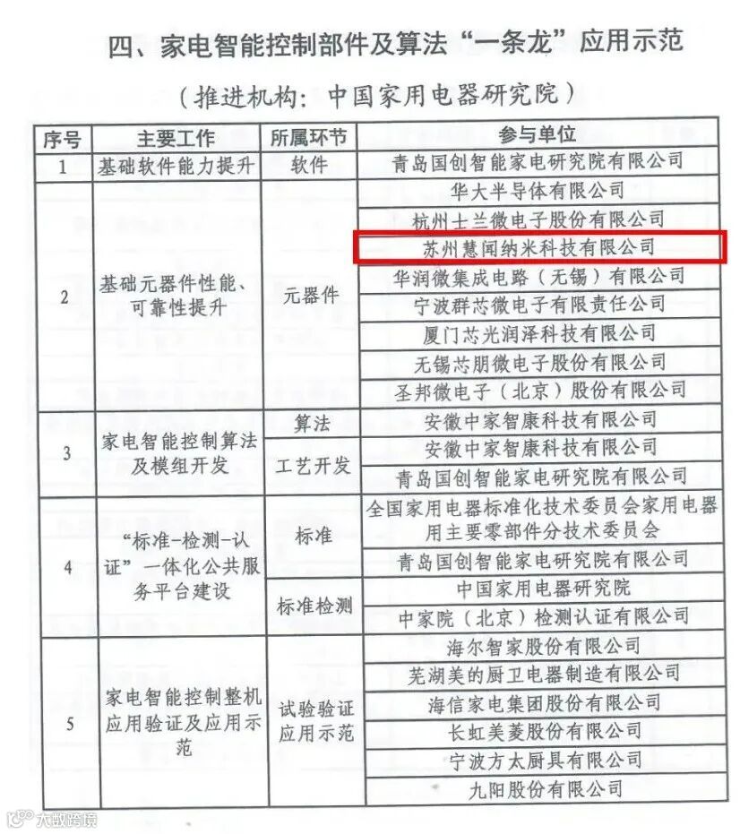 苏州慧闻纳米科技有限公司凭借多年来在智能气体传感器领域的研发设计、制造工艺、质量管控等硬实力入选家电智能控制部件及算法“一条龙”应用示范参与单位,所属环节为元器件,主要工作是基础元器件性能、可靠性提升。标志着慧闻科技智能气体传感器成为国家新型战略产业链、供应链中关键的基础元器零部件。